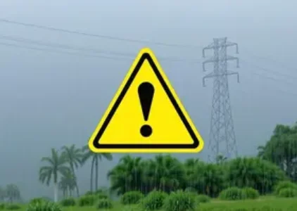 Alerta amarelo de chuvas intensas em Brusque com risco de energia elétrica sem fornecimento.